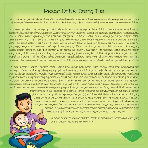 di dalamnya. Nilai-nilai moral dalam cerita tersebut tentunya dapat kita ambil dan tanamkan pada anak-anak kita.